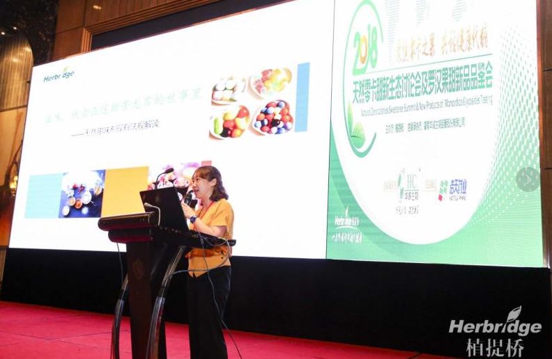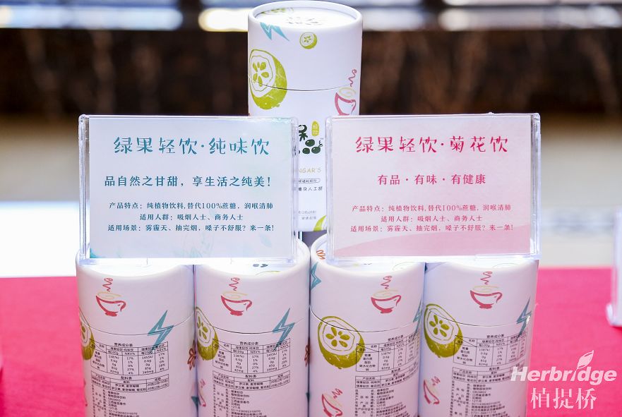 作为此次会议的主角罗汉果闪亮登场,罗汉果健康,天然,低卡路里,而且有着美味特殊的回甜味。其应用历史悠久,是中国首批药食两用材料之一,可以作为食品,也可以作为食品添加剂;同时它也是一种风味剂增强剂,可广泛用于香精香料的复配增强风味,也可用于制作风味食品,可以作为矫味剂,抑制或者掩盖某些食物的不良味道;兼具润喉清肺以及抗雾霾的潜在品质。罗汉果与很多植物复配有非常显著的保健功能,没有任何的副作用,法规添加中无限制添加量要求。众多特点,使得罗汉果成为“高端代糖代表”,也是减糖计划中不可或缺的重要角色。华诚生物周总进一步列举了罗汉果甜在中国发展的市场,目前罗汉果在饮料、润喉糖、蛋白粉以及多种功能食品领域有着广泛的应用。华诚生物作为此次会议的独家承办方,经过多年的努力,打造出了罗汉果全产业链联盟,包括上游的罗汉果种植企业,中游的罗汉果生产企业,罗汉果甜应用研发企业以及下游的终端销售,不仅着重生产,在种植,研发和终端应用方面都做了非常多的工作,包括今天大家在茶歇期间品尝到的美味,都是华诚亲历亲为,为每一位参会嘉宾奉上了健康的美味,让大家留下了更多甜蜜的回忆。