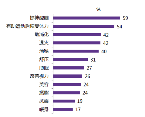 什么样的功能饮料最受消费者的喜欢?消费者最关注哪些功能原料呢?来自醒力食品的研发总监,从市场出发,用详尽数据给大家洞察了功能饮料的发展趋势。据调查“提神醒脑/补充能量”最受消费者青睐,其次是“有助运动后恢复体力”。消费者的浓厚兴趣也表明运动饮料和能量饮料市场的前景广阔。 25-39岁、居住在一线城市、高收入和全职消费者对舒压功能更感兴趣。相比其他年龄群体,20-24岁的年轻消费者对“改善视力”的兴趣明显更高。值得注意的是,虽然雾霾在近几年已成为大众关注议题,但仅有19%的消费者表示有兴趣购买具有抗霾宣称的饮料。这可能是因为消费者并不会真的相信食品饮料会抗击雾霾。
