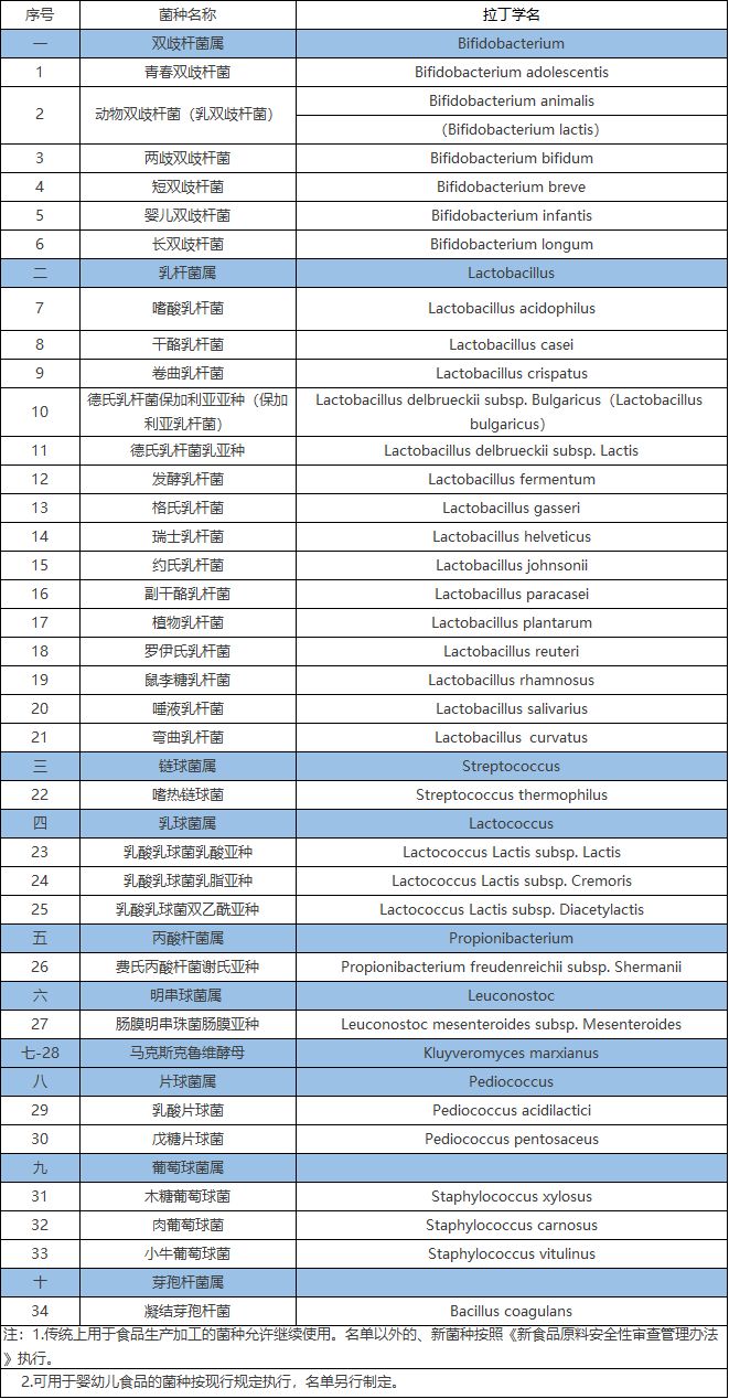 附录2 可用于食品的菌种名单(截止2019年5月31日)