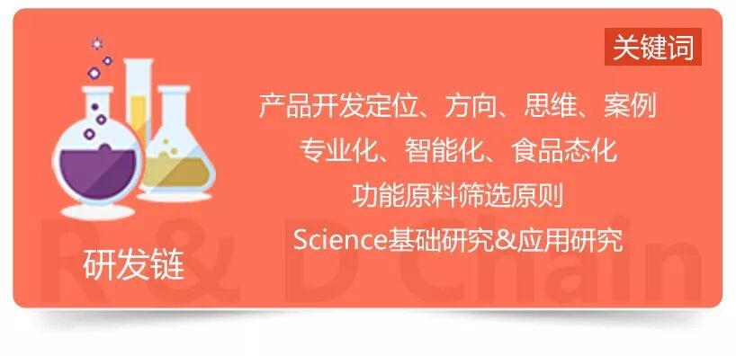 科学研究和研发创新被视为企业源源不断的发展动力。不论是产品创新还是科研创新,都要求以消费为导向。脑健康、消化健康、关节健康、口服美容、体重控制、运动营养等这些健康趋势如何把握?老龄化、儿童营养、女性健康、慢病管理等如何提供解决方案?这些热议的话题都将在研发链版块讨论。另外,产品是营销的基础和根本,品控是企业获利的基本保障性环节,在这个版块我们还将看到国际性大企业,如何掌控“品控”这个重中之重!